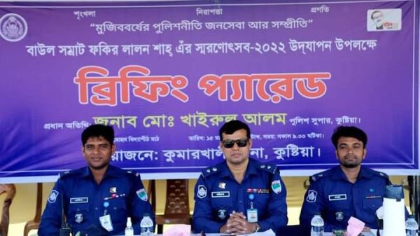 সমাচার ডেস্ক অনলাইনঃ মঙ্গলবার (১৫ মার্চ২০২২) সকাল ৯ টায় বাউল সম্রাট ফকির লালন শাহের স্মরণোৎসব – ২০২২ উপলক্ষে ফোর্স মোতায়েন, ডিউটি কালীন সময়ে আচরণ ও আইন শৃঙ্খলা সংক্রান্তে করনীয় নিয়ে