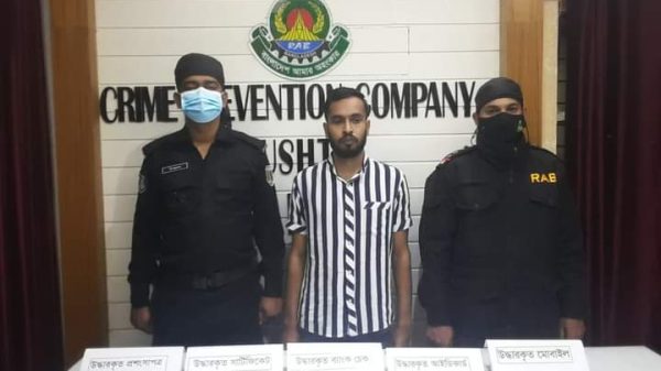 সমাচার ডেস্ক অনলাইনঃ ঘটনার সংক্ষিপ্ত বিবরণঃ র্যাব-১২, সিপিসি-১, কুষ্টিয়া ক্যাম্পের একটি চৌকষ আভিযানিক দল অদ্য ০১ মার্চ ২০২২ ইং তারিখ বিকাল ০৫:২০ ঘটিকার সময় ‘‘কুষ্টিয়া জেলার দৌলতপুর থানাধীন ফিলিপনগর মোঃ