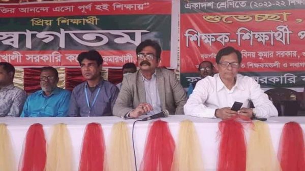 চয়ন আহমেদ।। শিক্ষা মন্ত্রালয়ের নির্দেশনা অনুযায়ী আজ সকাল ১০ টায় সাস্থ্য বিধিনিষেধ মেনে কুষ্টিয়ার কুমারখালী সরকারী কলেজের একাদশ শ্রেণির সকল বিভাগের ক্লাসের শুভ উদ্বোধন করা হয়। উক্ত উদ্বোধন অনুষ্ঠানে সভাপতির