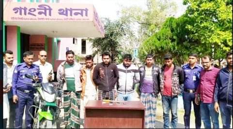 মেহেরপুর প্রতিনিধিঃ মেহেরপুরের গাংনীত ৬জন ডাকাতকে গ্রেফতার করেছে পুলিশ। বাঁশবাড়িয়া-চিৎলা সড়কে ডাকাতির ঘটনায় গত বৃহস্পতিবার রাতভর বিভিন্ন স্থানে অভিযান চালিয়ে তাদের গেফতার করা হয়।গ্রেপ্তারকৃতরা হলো,সদর থানার উত্তর শালিকা গ্রামের আবেদ