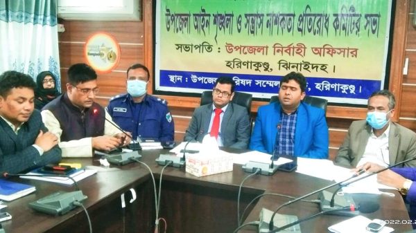 হরিনাকুণ্ডু (ঝিনাইদহ) থেকে রাব্বুল হুসাইন ঝিনাইদহের হরিণাকুণ্ডু উপজেলা প্রশাসনের আয়োজনে আইন শৃঙ্খলা,সন্ত্রাস ও নাশকতা কমিটির সভা অনুষ্ঠিত হয়েছে। আজ মঙ্গলবার (২২ ফেব্রুয়ারি) সকালে উপজেলা নির্বাহী কর্মকর্তার সম্মেলন কক্ষে উপজেলা নির্বাহী