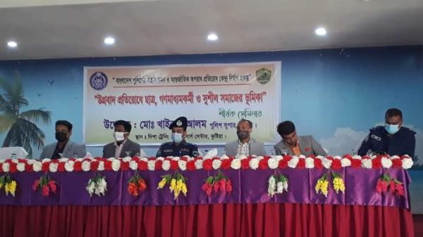 সমাচার ডেস্কঃ সন্ত্রাসবাদকে না বলুন, প্রতিপাদ্যকে সামনে রেখে কুষ্টিয়া জেলা পুলিশ কর্তৃক আয়োজিত দিশা ট্রেনিং এন্ড রিসোর্স সেন্টারের কনফারেন্স রুমে ১৭ জানুয়ারি সোবার সকাল ১১টায় “উগ্রবাদ প্রতিরোধে ছাত্র, গণমাধ্যম কর্মী