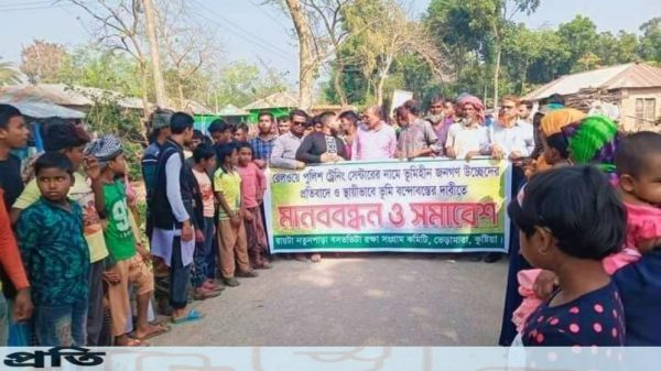 আজিজুল হাকিম ভেড়ামারা, কুষ্টিয়ার ভেড়ামারা উপজেলার বাহাদুরপুর ইউনিয়নের রায়টা নতুনপাড়ায় গড়ে উঠা প্রায় দেড় হাজার পরিবার কে পুর্নবাসনের মাধ্যমে রেলওয়ে জিআরপি পুলিশ ট্রেনিং সেন্টার স্থাপনের দাবী জানিয়ে মানববন্ধন ও সমাবেশ