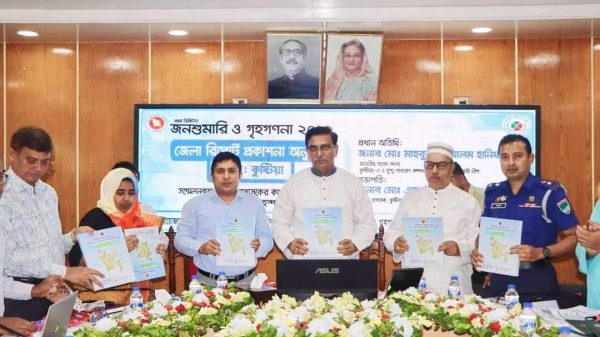 সমাচার ডেস্ক অনলাইন: আজ ২৭ জুন, ২০২৪ তারিখে জেলা প্রশাসকের সম্মেলন কক্ষে কুষ্টিয়া জেলা প্রশাসক জনাব মো: এহেতেশাম রেজার সভাপতিত্বে কুষ্টিয়া জেলার “জনশুমারি ও গৃহগণনা, ২০২২-এর জেলা রিপোর্ট প্রকাশনা অনুষ্ঠান”