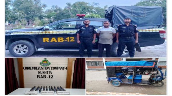 সমাচার ডেস্ক অনলাইন : কুষ্টিয়ায় র্যাবের অভিযানে ৫০ বোতল ফেনসিডিল সহ ১ মাদক কারবারী গ্রেফতার করা হয়েছে। কুষ্টিয়া জেলার ভেড়ামারা থানাধীন গাছিয়া দৌলতপুর গ্রামে” এক বিশেষ অভিযান পরিচালনা করে এই