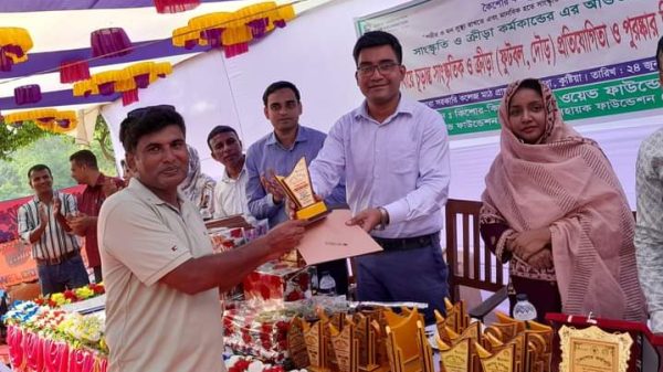 শিপন আলী,স্টাফ রিপোর্টার: আজ সোমবার কুষ্টিয়ার ভেড়ামারা সরকারি কলেজ মাঠে দিনব্যাপী ওয়েবভ ফাউন্ডেশন ও পল্লী কর্ম সহায়ক ফাউন্ডেশন ( পিকেএসএফ) উদ্যোগে উপজেলা পর্যায়ে চূড়ান্ত সাংস্কৃতিক ও ক্রীড়া প্রতিযোগিতা ও পুরস্কার