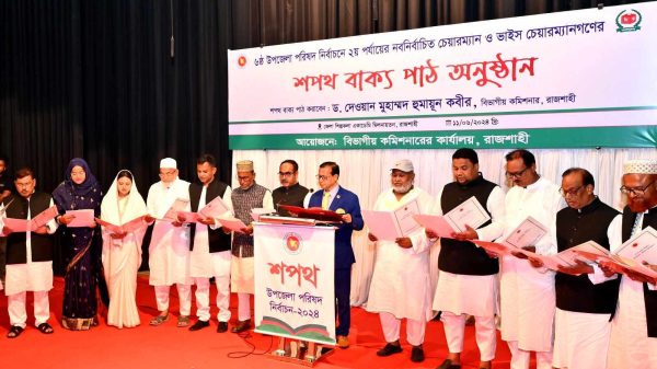 মোঃ আলাউদ্দীন মন্ডল রাজশাহী : ষষ্ঠ উপজেলা পরিষদ নির্বাচনের দ্বিতীয় ধাপে রাজশাহী বিভাগের ৮ জেলার ১৯ উপজেলার নির্বাচিত চেয়ারম্যান, ভাইস চেয়ারম্যান ও মহিলা ভাইস চেয়ারম্যানরা শপথ গ্রহণ করেছেন। মঙ্গলবার (১১