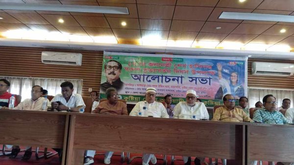 নিজস্ব প্রতিনিধি: বঙ্গবন্ধুকন্যা প্রধানমন্ত্রী ও আওয়ামী লীগ সভাপতি শেখ হাসিনার স্বদেশ প্রত্যাবর্তন দিবসে কুষ্টিয়ায় আলোচনা সভা অনুষ্ঠিত। শুক্রবার (১৭ মে) বিকেল ৪টার দিকে বঙ্গবন্ধু সুপার মার্কেট আওয়ামী লীগ কার্যালয়ে কুষ্টিয়া