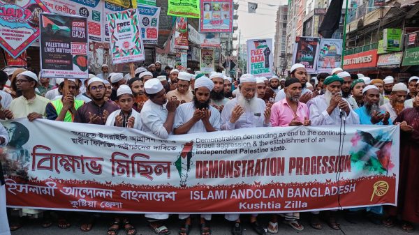 মোঃ রবিউল ইসলাম হৃদয়, কুষ্টিয়া : অব্যাহত ইসরাইল আগ্রাসন বন্ধ ও স্বাধীন ফিলিস্তিন রাষ্ট্র গঠনের দাবিতে কুষ্টিয়ায় বিক্ষোভ মিছিল করেছে ইসলামী আন্দোলন বাংলাদেশ কুষ্টিয়া জেলা শাখা । শুক্রবার (১৭ মে)