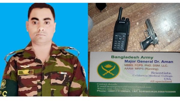 নিজস্ব প্রতিবেদক : কুষ্টিয়ায় বাংলাদেশ সেনাবাহিনীর মেজর জেনারেল ডা. আমান নামে পরিচয় দানকারী এক ভুয়া সেনা কর্মকর্তাকে আটক করেছে ইসলামী বিশ্ববিদ্যালয় (ইবি) থানা পুলিশ। রোববার (১ ডিসেম্বর) বিকেলে কুষ্টিয়ার সদর