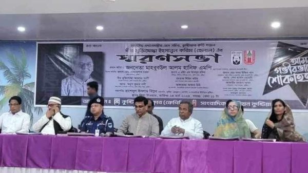 জাহিদুল ইসলাম : প্রধানমন্ত্রীর প্রেস সচিব কুষ্টিয়ার কৃতি সন্তান বীর মুক্তিযোদ্ধা ইহসানুল করিম (হেলাল) এঁর স্মরণসভা গতকাল রবিবার বেলা ১১ টার সময় কুষ্টিয়া দিশা টাওয়ারের অডিটোরিয়ামে অনুষ্ঠিত হয়। কুষ্টিয়া প্রেস