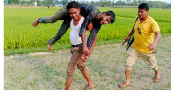 সমাচার ডেস্ক অনলাইন: জীবন নামে এক ডাকাতকে গ্রেফতার করে এক পুলিশ সদস্যের কাঁধে তুলে আনার ছবি সামাজিক যোগাযোগ মাধ্যমে ভাইরাল হয়েছে ব্রাহ্মণবাড়িয়ার নাসিরনগরে। শুক্রবার (২২ মার্চ) ইফতারের আগ মুহূর্তে উপজেলার