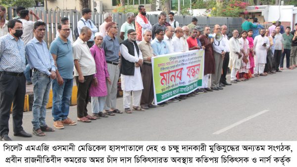 তোফায়েল আহমদ, বিভাগীয় ব্যুরো চীফ, সিলেট: সিলেট এমএজি ওসমানী মেডিকেল হাসপাতালে দেহ ও চক্ষু দানকারী মুক্তিযুদ্ধের অন্যতম সংগঠক, প্রবীন রাজনীতিবীদ কমরেড অমর চাঁদ দাস চিকিৎসারত অবস্থায় কতিপয় চিকিৎসক ও নার্স