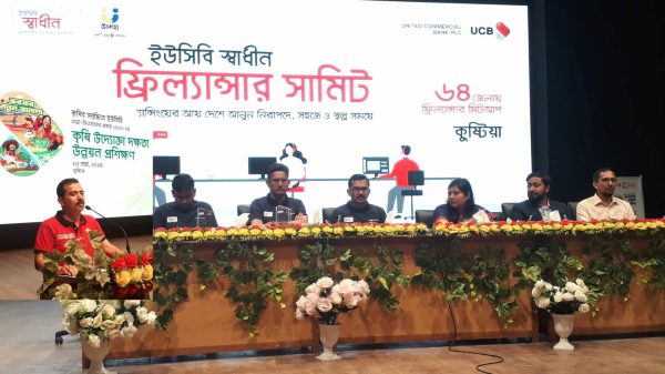 নিজস্ব প্রতিনিধি: কুষ্টিয়ায় কৃষি উদ্যোক্তাদের প্রশিক্ষণ ও ফ্রিল্যানসার সামিট অনুষ্ঠিত হয়েছে।কৃষি সমৃদ্ধকে আরো এগিয়ে নিতে উদ্যোক্তা কৃষকদের ‘কৃষি উদ্যোক্তা দক্ষতা উন্নয়ন প্রশিক্ষণ’ দিয়েছে ইউনাইটেড কমার্শিয়াল ব্যাংক পিএলসি ইউসিবি। শনিবার সকাল