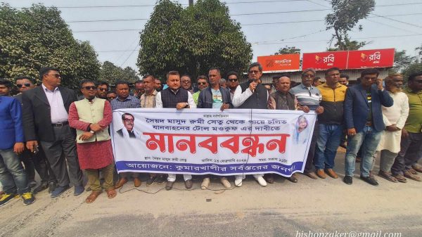 নিজস্ব প্রতিনিধি : “পায়ে চালিত কোন বাহনের টোল দেওয়া হবেনা, প্রয়োজনে আমি দাঁড়িয়ে থাকবো” এমপি আব্দুর রউফ! কুষ্টিয়ার কুমারখালী সৈয়দ মাছ-উদ রুমি সেতুতে পায়ে চালিত বাহনের টোল ফ্রি,র জন্য মানববন্ধন