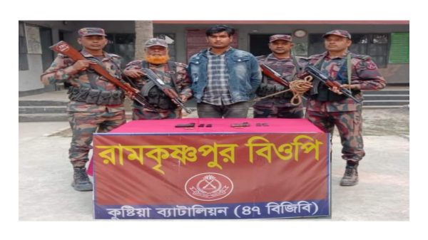 শিপন আলী: ৩১-০১-২০২৪ ইং তারিখ সময় ৩:১০(৪:১০) ঘটিকায় কুষ্টিয়া ব্যাটালিয়ন (৪৭বিজিবি) এর অধিনস্থ রামকৃষ্ণপুর বিওপি টহল কমান্ডার নং-৫২৮২৩ হাবি:মো: আ: সাত্তার এর নেতৃত্বে মেইন পিলার ১৫৩/৬ এস হতে আনুঃ ০২