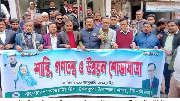 এইচ এম ইমরানঃ বিএনপি ও তার মিত্রদের কালো পতাকা কর্মসূচির বিরুদ্ধে ঝিনাইদহের শৈলকুপায় আওয়ামীলীগের শান্তি, গণতন্ত্র ও উন্নয়ন শোভাযাত্রা অনুষ্ঠিত হয়েছে। মঙ্গলবার(৩০ জানুয়ারী) দুপুরে উপজেলা আওয়ামীলীগের আয়োজনে এ সমাবেশ অনুষ্ঠিত